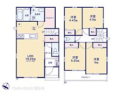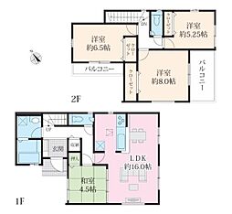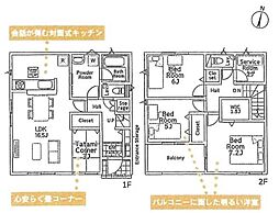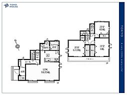開放感のある角地区画です。家事効率の良い、水回りを集めた間取り。主寝室には2か所の収納付きです。
