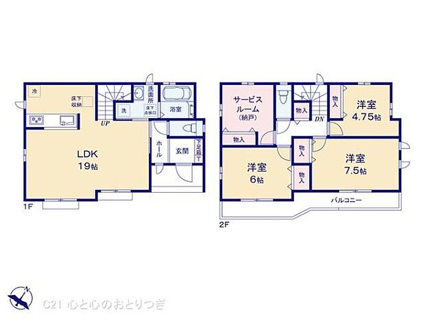 | 間取り | 3SLDK 間取り内訳:リビングダイニングキッチン 19帖(1階) |