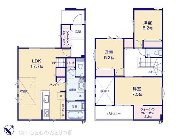 | 間取り | 3LDK 間取り内訳:リビングダイニングキッチン 17.7帖(1階) |