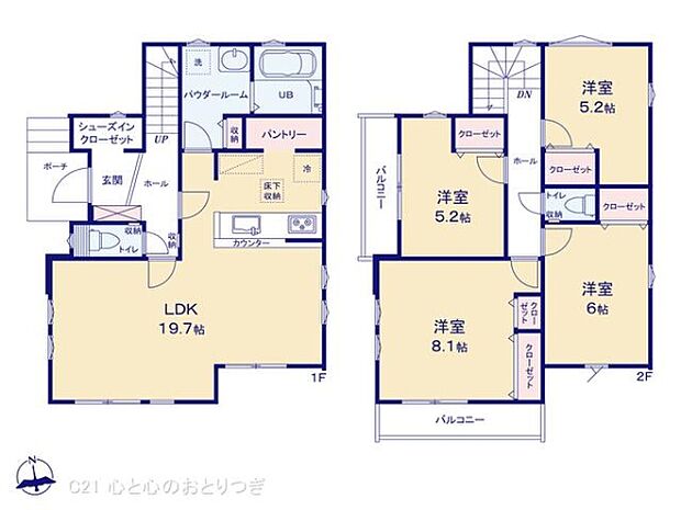 | 間取り | 4LDK 間取り内訳:リビングダイニングキッチン 19.7帖(1階) |