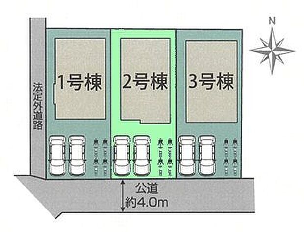 南側道路に面しており日当たり良好。ゆとりの敷地約42坪。車2台並列駐車可能です。
