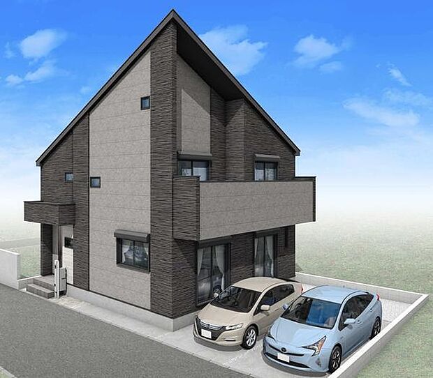 並列2台駐車可。南東側庭先約5mにつき陽当たり良好!勾配天井が開放的な19.3帖のLDK。ロフト付き