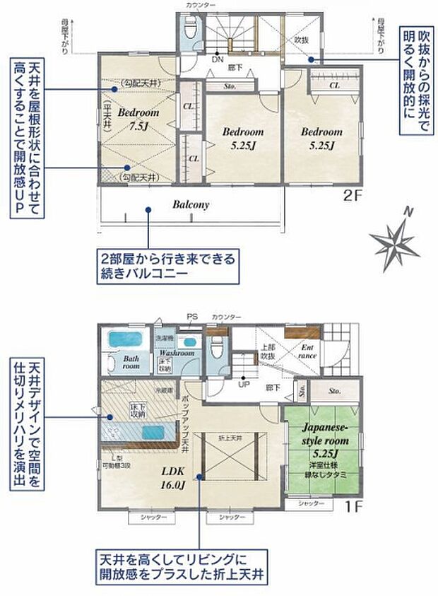 スーパーやドラッグストアも5分圏内で生活利便性も良い好立地です。玄関には吹抜天井を採用で明るく開放的