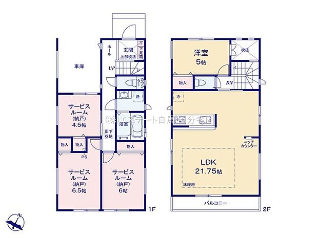 • 「建築条件付き土地」の「建物プラン例」は、土地購入者の設計プランの一例であり、プランの採用可否は任意です。