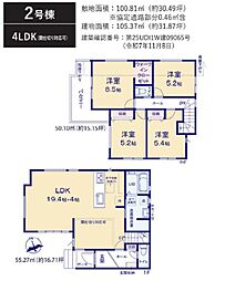 間取り内訳:リビングダイニングキッチン 23.3帖(1階)・洋室 9.5帖(2階)・洋室 5.2帖(2階)・洋室 5帖(2階)・洋室 5帖(2階)
