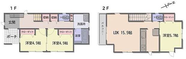 | 間取り | 3LDK 間取り内訳:リビングダイニングキッチン 15.5帖・洋室 5.7帖・洋室 4.5帖・洋室 4.5帖 |