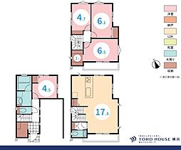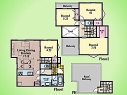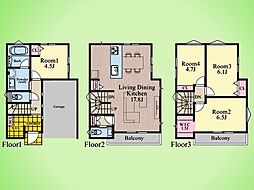 | 間取り | 4LDK 間取り内訳:洋室 4.5帖(1階)・リビングダイニングキッチン 17.8帖(2階)・洋室 6.5帖(3階)・洋室 6.1帖(3階)・洋室 4.7帖(3階) |