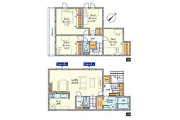 間取り内訳:洋室 7.1帖(2階)・洋室 5.3帖(2階)・洋室 5.3帖(2階)・洋室 5.1帖(2階)・リビングダイニングキッチン 21.4帖(1階)