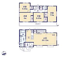 | 間取り | 4LDK 間取り内訳:リビングダイニングキッチン 20.1帖(1階)・洋室 7.5帖(2階)・洋室 6帖(2階)・洋室 5.2帖(2階)・洋室 5.2帖(2階) |