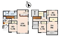 間取り内訳:リビングダイニングキッチン 18帖(1階)・洋室 6帖(1階)・洋室 6.5帖(2階)・洋室 6帖(2階)・洋室 8.5帖(2階)