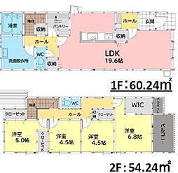 間取り内訳:リビングダイニングキッチン 18帖(1階)・洋室 7帖(2階)・洋室 6帖(2階)・洋室 4.5帖(2階)