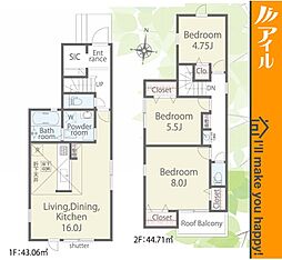 間取り内訳:リビングダイニングキッチン 18帖(1階)・洋室 7帖(2階)・洋室 6帖(2階)・洋室 4.5帖(2階)