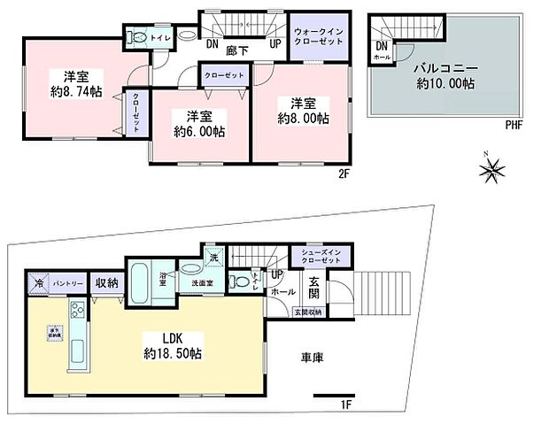 | 間取り | 3LDK 間取り内訳:リビングダイニングキッチン 18.5帖(1階) |