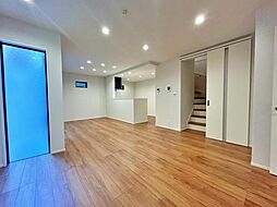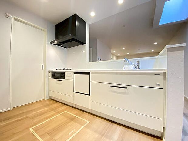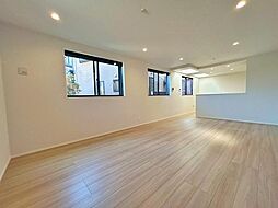 キッチンから室内が見渡せるストレートラインのLDK。建物完成済。お気軽に内覧していただけます。