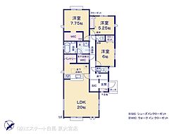 | 間取り | 3LDK 間取り内訳:リビングダイニングキッチン 20帖(1階)・洋室 7.7帖(1階)・洋室 6帖(1階)・洋室 5.2帖(1階) |
