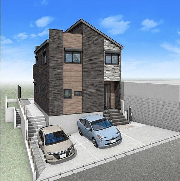 土地面積は広々52坪以上 勾配天井の開放感溢れる23帖LDKにはリビング階段を配置。並列2台駐車可