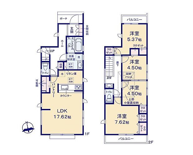 | 間取り | 4LDK 間取り内訳:リビングダイニングキッチン 17.6帖(1階) |