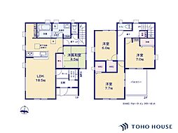 • 「建築条件付き土地」の「建物プラン例」は、土地購入者の設計プランの一例であり、プランの採用可否は任意です。