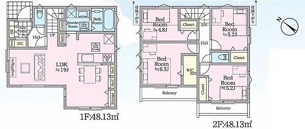 間取り内訳:リビングダイニングキッチン 19帖・洋室 6.3帖・洋室 4.8帖・洋室 5.2帖・洋室 5.2帖