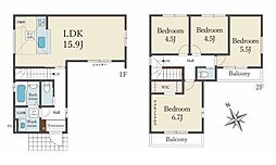 間取り内訳:リビングダイニングキッチン 18.3帖(1階)・洋室 6.5帖(2階)・洋室 5.7帖(2階)・洋室 4帖(2階)・洋室 6.5帖(2階)