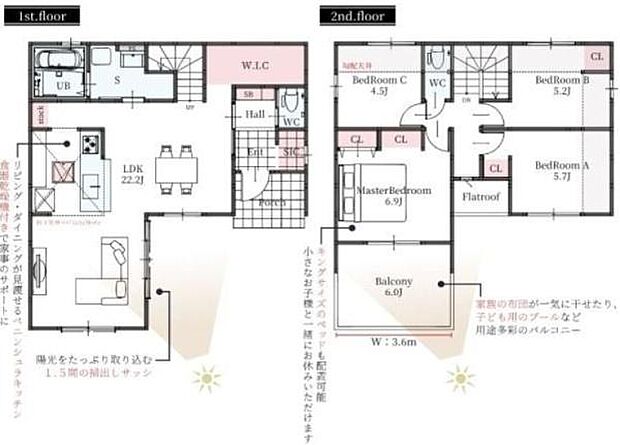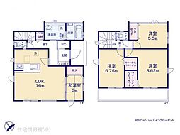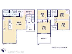 | 間取り | 4LDK 間取り内訳:リビングダイニングキッチン 22.2帖(1階)・洋室 6.9帖(2階)・洋室 5.7帖(2階)・洋室 5.2帖(2階)・洋室 4.5帖(2階) |