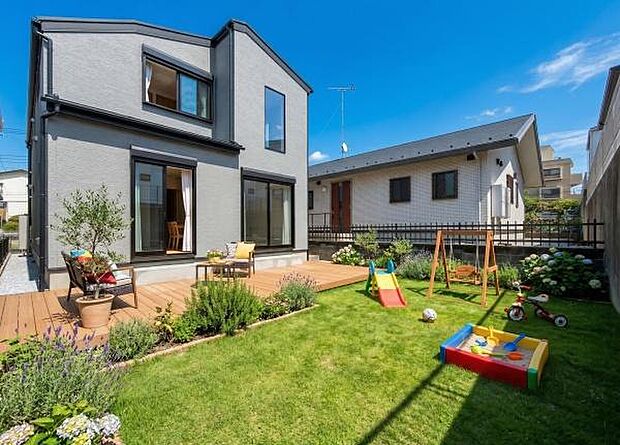 • 「憧れのガーデンライフ」碧空とガーデンライフが可能な日々の暮らしを豊かに彩ります。(画像のウッドデッキや芝生、植栽や遊具等はCGによるイメージ画像です)