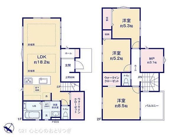 | 間取り | 3LDK 間取り内訳:リビングダイニングキッチン 18.2帖(1階) |