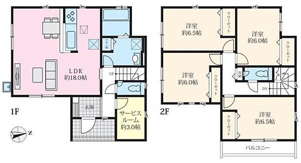 | 間取り | 4LDK 間取り内訳:リビングダイニングキッチン 18帖(1階)・洋室 6.5帖(2階)・洋室 6.5帖(2階)・洋室 6帖(2階)・洋室 6帖(2階) |
