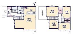| 間取り | 3LDK 間取り内訳:リビングダイニングキッチン 20帖(1階)・洋室 8.1帖(2階)・洋室 5.3帖(2階)・洋室 5.2帖(2階) |