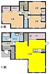 | 間取り | 3LDK 間取り内訳:リビングダイニングキッチン 15帖(1階)・洋室 5.2帖(2階)・洋室 5.2帖(2階)・洋室 5.2帖(2階) |