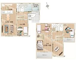 | 間取り | 4LDK 間取り内訳:リビングダイニングキッチン 16帖(1階)・洋室 6帖(1階)・洋室 14.5帖(2階)・洋室 5.5帖(2階)・洋室 5.2帖(2階) |