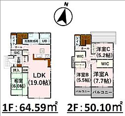 | 間取り | 4LDK 間取り内訳:リビングダイニングキッチン 16帖(1階)・和室 3畳(1階)・洋室 7帖(2階)・洋室 6.5帖(2階)・洋室 5.2帖(2階) |