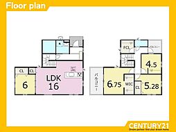 | 間取り | 4LDK 間取り内訳:リビングダイニングキッチン 16.7帖(1階)・洋室 6.5帖(2階)・洋室 5.2帖(2階)・洋室 4.5帖(2階)・洋室 4.1帖(2階) |