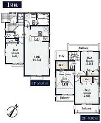 | 間取り | 4LDK 間取り内訳:リビングダイニングキッチン 20帖(1階)・洋室 4.5帖(2階)・洋室 7.5帖(2階)・洋室 6.5帖(2階)・洋室 4.5帖(2階) |