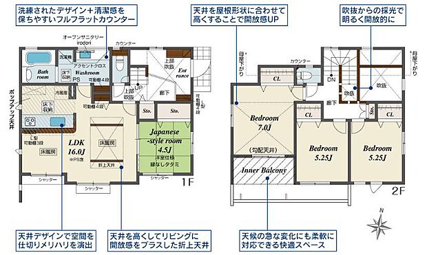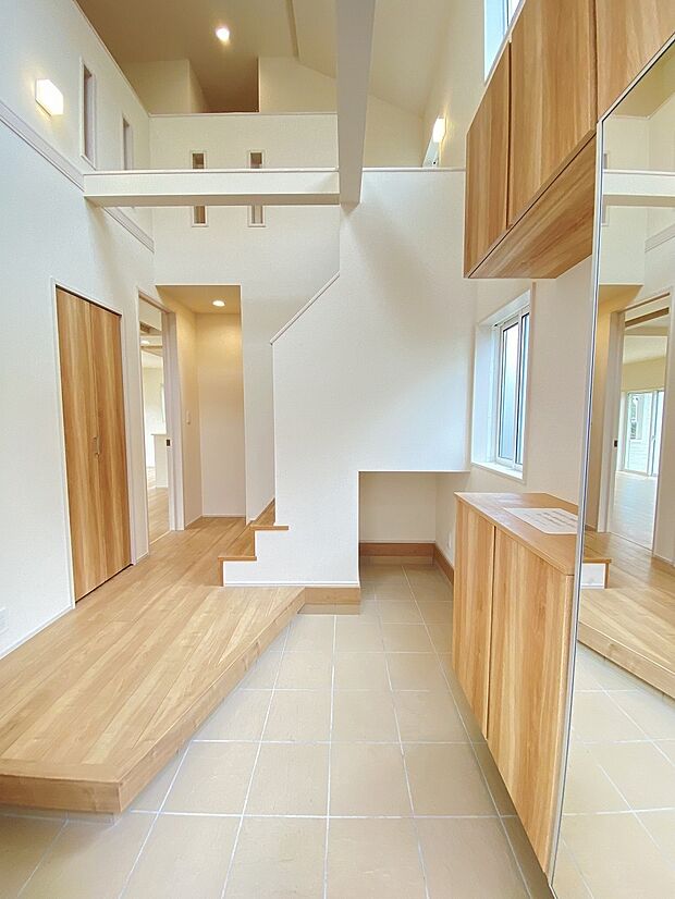 全室南向きに加え、玄関に吹抜けがあり明るく開放的な間取り 食洗機や床暖房などの設備も充実しています。