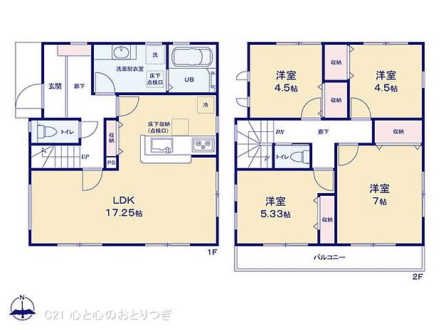• 「建築条件付き土地」の「建物プラン例」は、土地購入者の設計プランの一例であり、プランの採用可否は任意です。