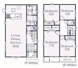 間取り内訳:リビングダイニングキッチン 15.2帖(1階)・洋室 4.5帖(2階)x2・洋室 6.1帖(2階)・洋室 8.8帖(2階)