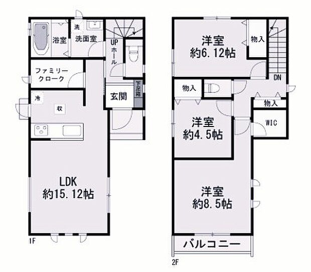 間取り内訳:リビングダイニングキッチン 16.1帖(1階)・和室 3畳(1階)・洋室 4.5帖(2階)・洋室 6.1帖(2階)・洋室 8.5帖(2階)
