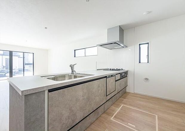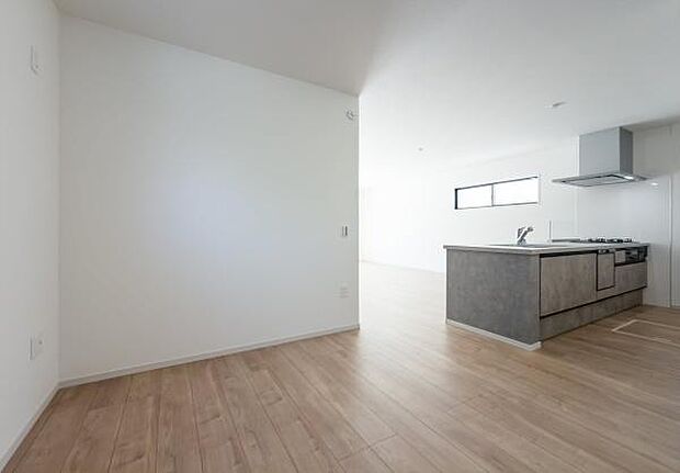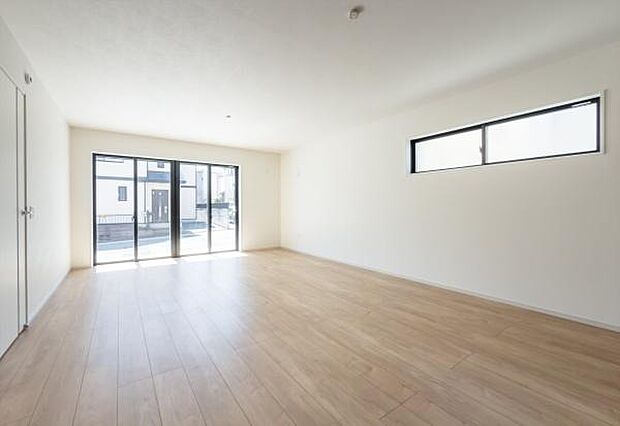 家族がゆったり過ごせる広々リビング。足元ポカポカ床暖房付。南道路で陽当たり良好です。