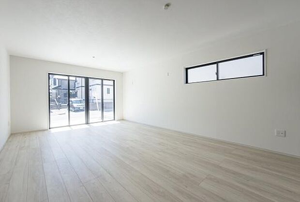 家族がゆったり過ごせる広々リビング。足元ポカポカ床暖房付。南道路で陽当たり良好です。