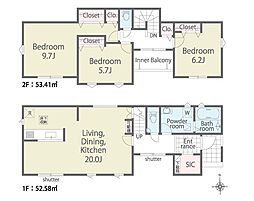 | 間取り | 4LDK 間取り内訳:リビングダイニングキッチン 18帖(1階)・洋室 5.2帖(1階)・洋室 7帖(2階)・洋室 6帖(2階)・洋室 6帖(2階) |