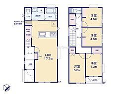 | 間取り | 4LDK 間取り内訳:リビングダイニングキッチン 18帖(1階)・洋室 6帖(2階)・洋室 6帖(2階)・洋室 4.5帖(2階)・洋室 4.5帖(1階) |