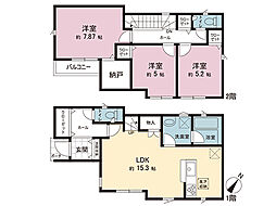 | 間取り | 3LDK 間取り内訳:洋室 6.1帖(1階)・洋室 4.1帖(1階)・洋室 4帖(1階)・リビングダイニングキッチン 15.6帖(2階) |