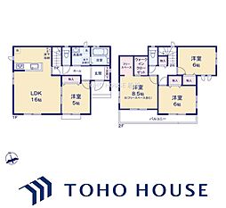 間取り内訳:リビングダイニングキッチン 16帖(1階)・和室 4.5畳(1階)・洋室 8.5帖(2階)・洋室 6.5帖(2階)・洋室 5.2帖(2階)