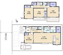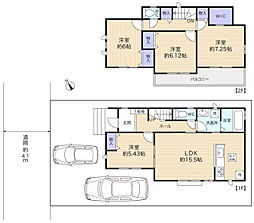 | 間取り | 4SLDK 間取り内訳:リビングダイニングキッチン 15帖(1階)・洋室 5.4帖(1階)・洋室 7.2帖(2階)・洋室 6.1帖(2階)・洋室 6帖(2階) |