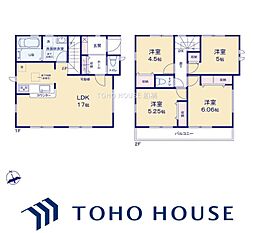 | 間取り | 3LDK 間取り内訳:リビングダイニングキッチン 17.6帖(1階)・洋室 9.5帖(2階)・洋室 5.2帖(2階)・洋室 5.2帖(2階) |