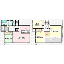 | 間取り | 4LDK 間取り内訳:リビングダイニングキッチン 16帖(1階)・和室 4.5畳(1階)・洋室 5.2帖(2階)・洋室 6.5帖(2階)・洋室 8帖(2階) |
