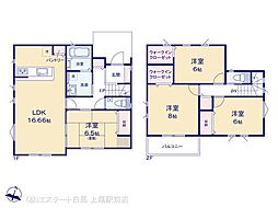 | 間取り | 4LDK 間取り内訳:リビングダイニングキッチン 16.6帖(1階)・洋室 6帖(1階)・洋室 8.5帖(2階)・洋室 6帖(2階)・洋室 6帖(2階) |