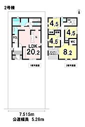 間取り内訳:リビングダイニングキッチン 20帖(1階)・和室 4.5畳(1階)・洋室 7帖(2階)・洋室 6帖(2階)・洋室 4.5帖(2階)・収納 3帖(2階)