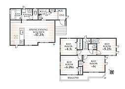 - 「建築条件付き土地」の「建物プラン例」は、土地購入者の設計プランの一例であり、プランの採用可否は任意です。